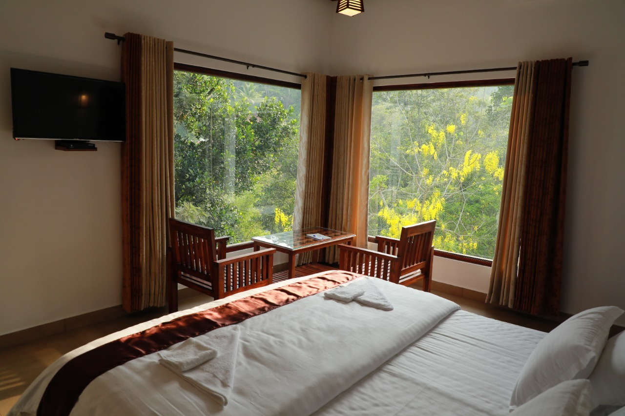 Our Deluxe and Pool rooms are pet-friendly, with enough area for your furry companions to play and run freely, both indoors and across the estate. A shared balcony with a glass roof invites you to relax with a book, sip on estate-fresh coffee, or simply watch the rain dance on the trees.